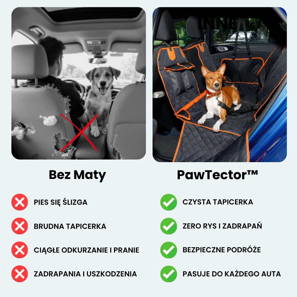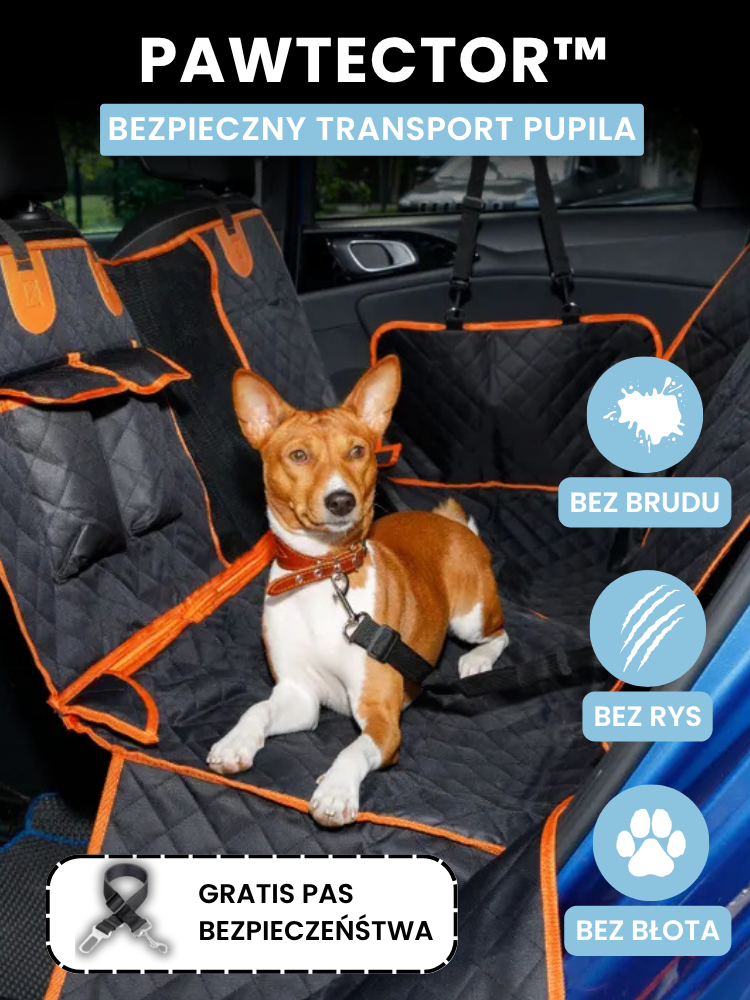 Pawtector™ to wodoodporna, antypoślizgowa mata, która chroni siedzenia przed sierścią, błotem i pazurami, zapewniając psu wygodne i bezpieczne miejsce w samochodzie.
