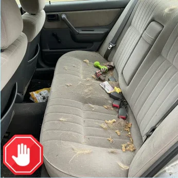 Brudne siedzenia, sierść w całym wnętrzu, zadrapane drzwi i zestresowany pupil ślizgający się po fotelu – każda podróż zamienia się w nerwy i sprzątanie.